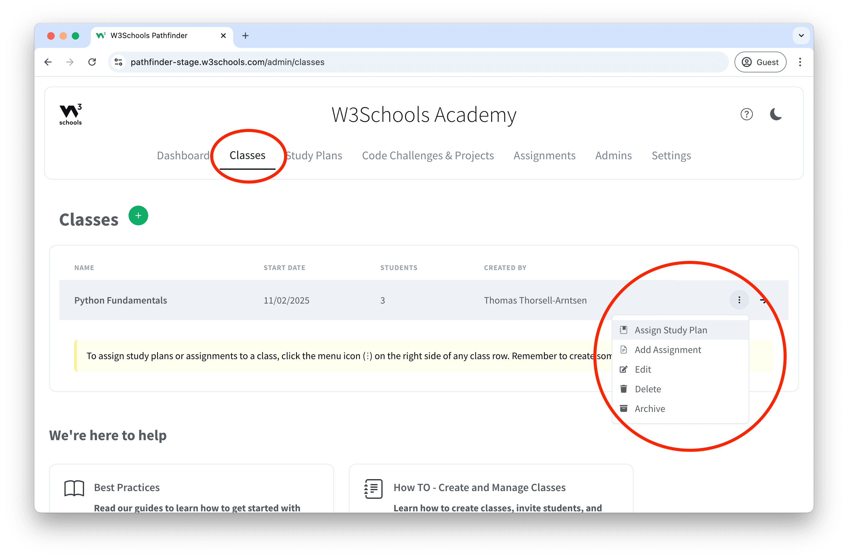 5. Select the Study Plan you want to assign to the class.