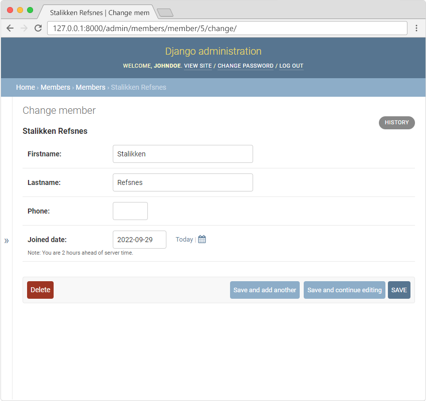 Now we are able to create, update, and delete members in our database, and we start by giving them all a date for when they became members.
