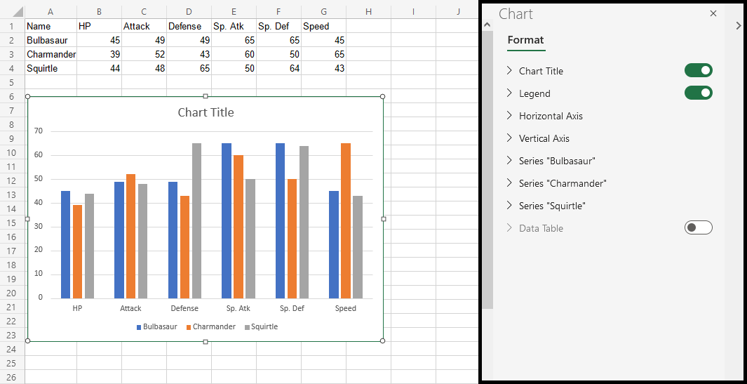 Note: You can remove the chart title by clicking on it and pressing the Deletekey on your keyboard.