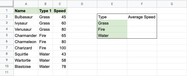 The function now calculates the average speed value of the Grass type Pokemon: Bulbasaur, Ivysaur and Venusaur.