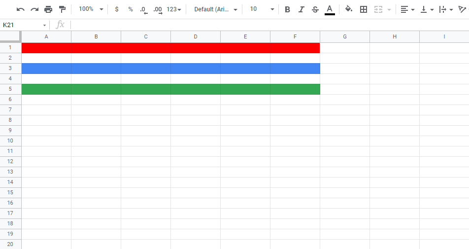 Google Sheets has a set of standard, theme and custom colors available for use. You select a color by clicking on it: