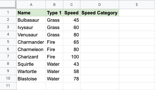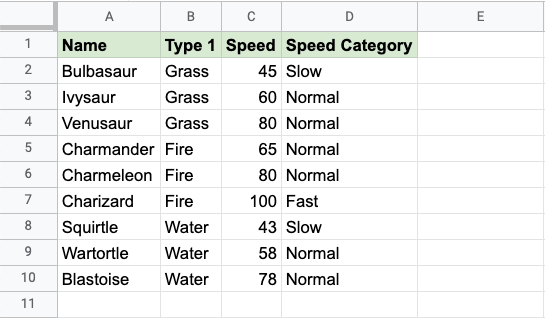 The function can be repeated with the filling function for each row to perform the same check for each Pokemon: