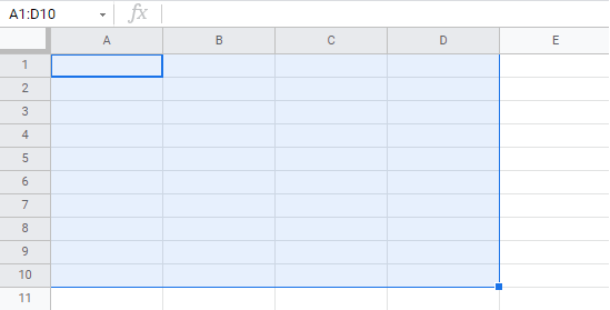 Selection of cell ranges has many use areas and it is one of the most important concepts of Google Sheets. Do not think too much about how it is used with values. You will learn about this in a later chapter. For now let's focus on how to select ranges.