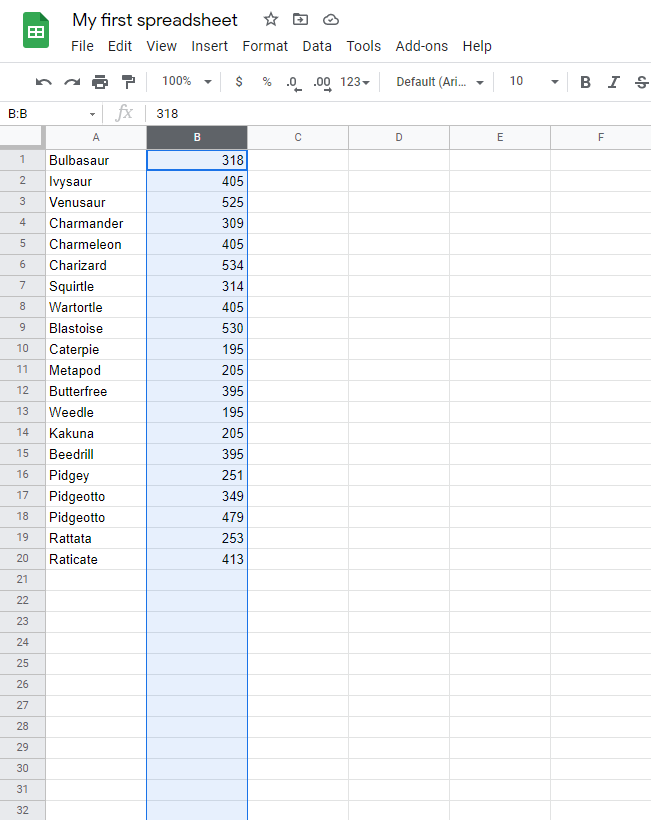 1. Click on the Data menu and select Sort sheet by column B, A → Z