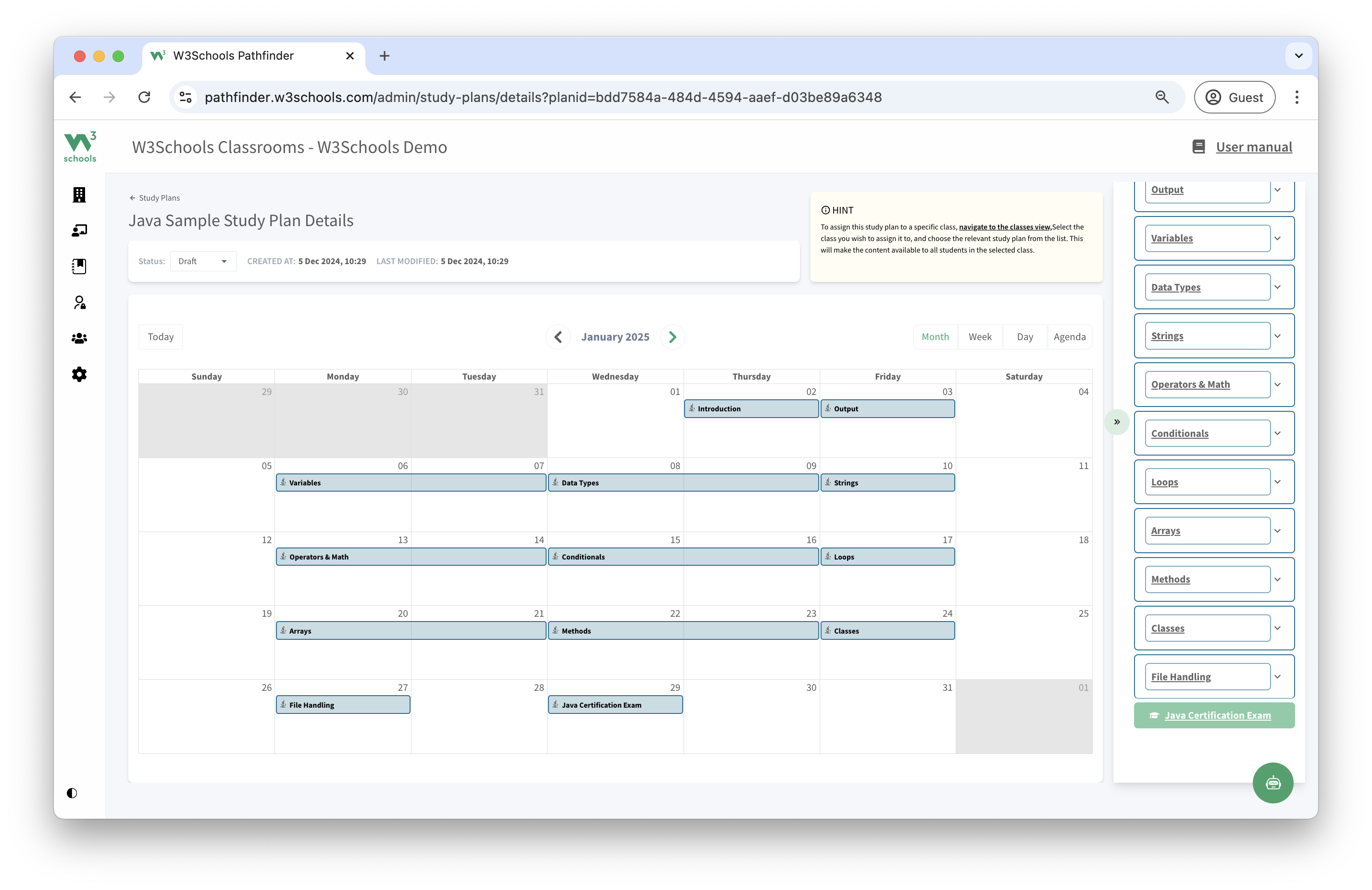 This study plan is a feature of W3Schools Academy.