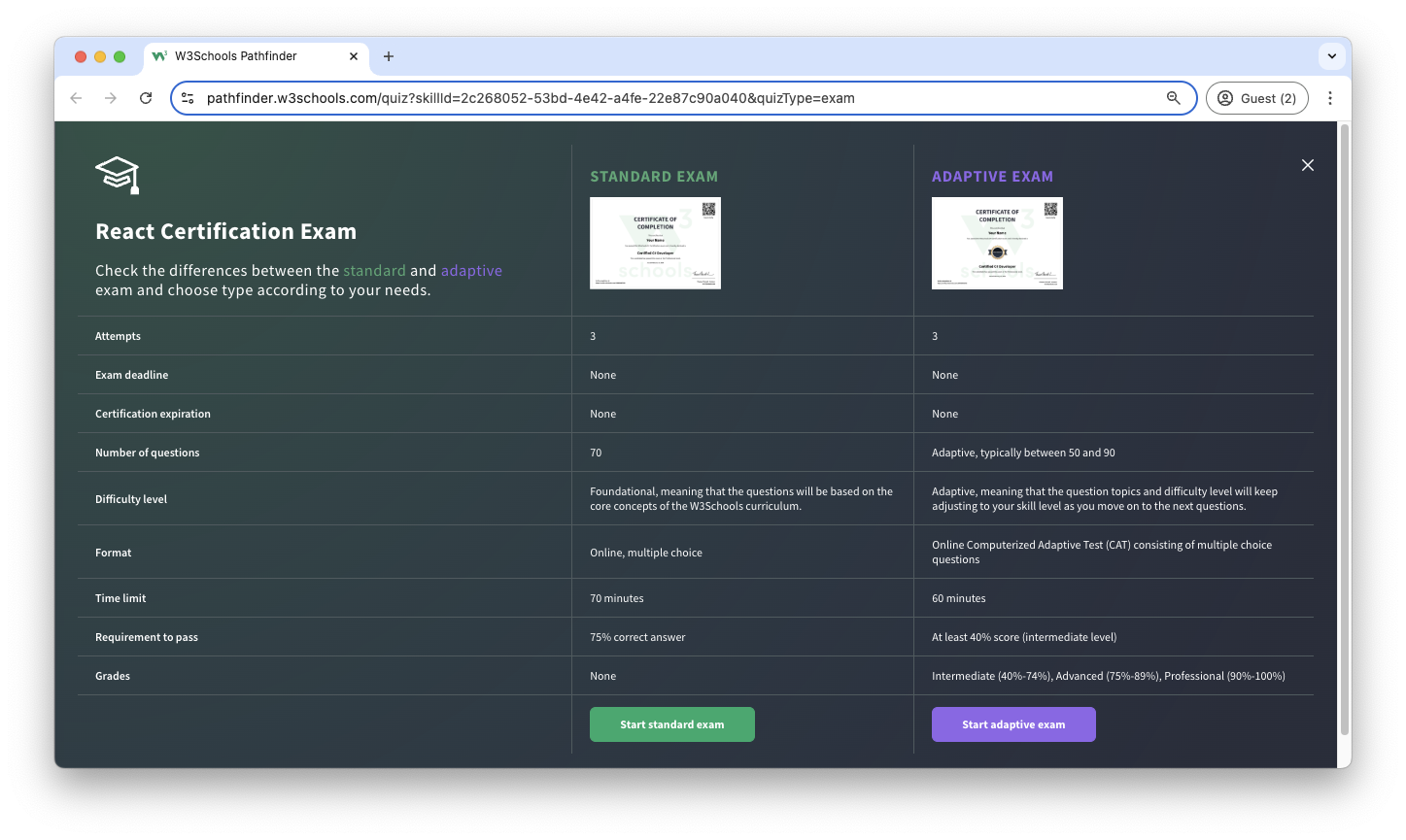 The React exam is a test that summarizes the W3Schools React syllabus.